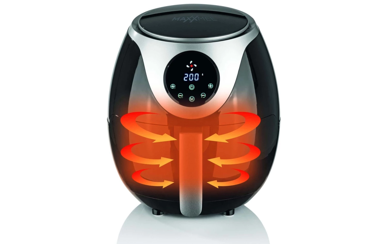 Detailfarbe: Silber, Schwarz, Frittiermethode: Heissluft, Display vorhanden: Ja, Multifunktionsgerät: Ja